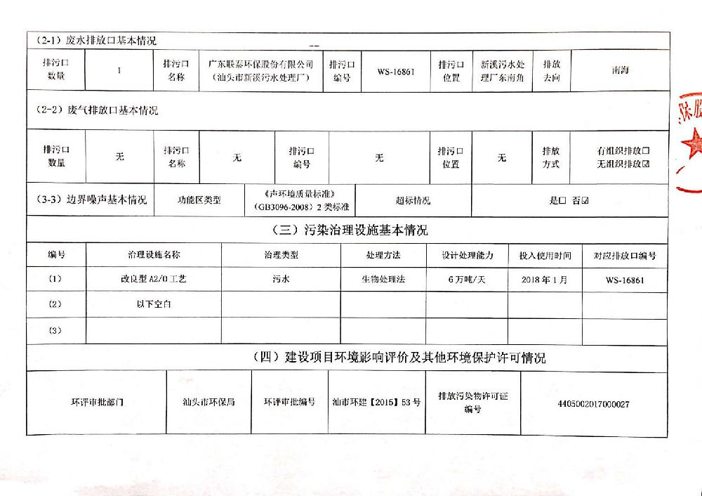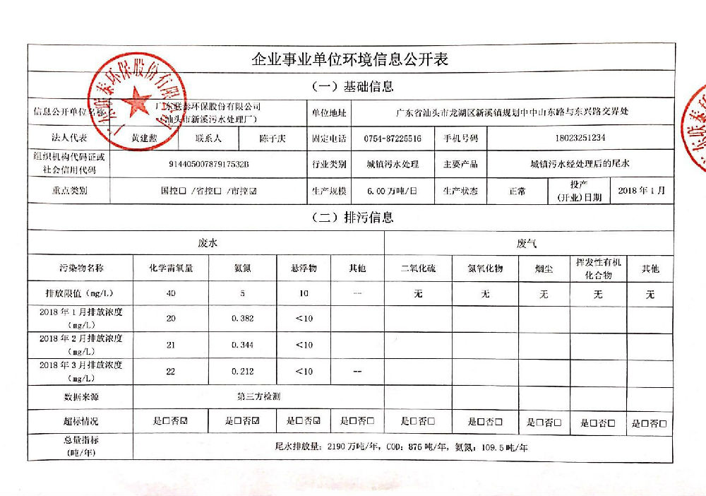 企業(yè)事業(yè)單位環(huán)境信息公開表(新溪污水處理廠)