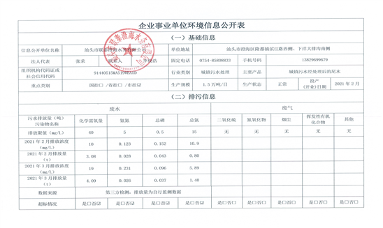 企事業單位環境信息公開表